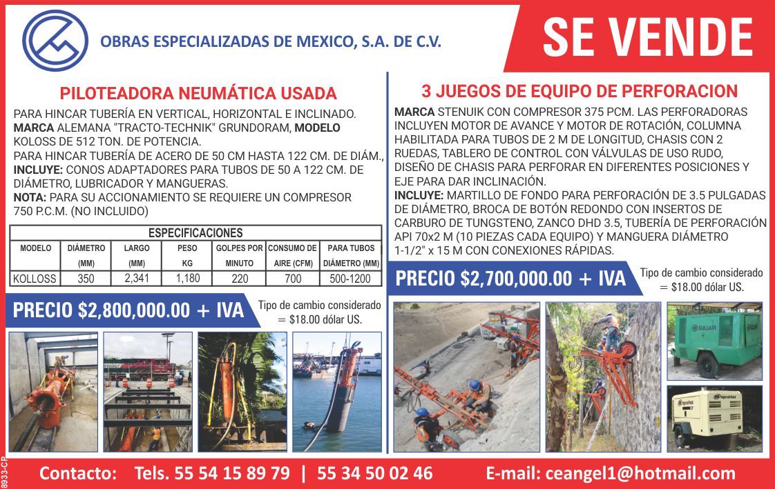 Piloteadora Neumática y Equipo de Perforación